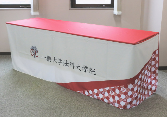 大学院様の屋内イベント用テーブルクロスを製作させて頂きましたので、ご紹介いたします。