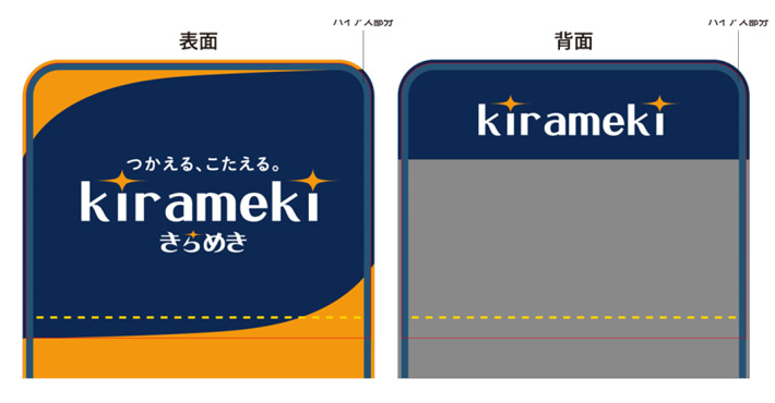 表面にキャッチコピーとロゴ、裏面にもロゴが入ったこちらのデザインから名入れ作成を行いました。