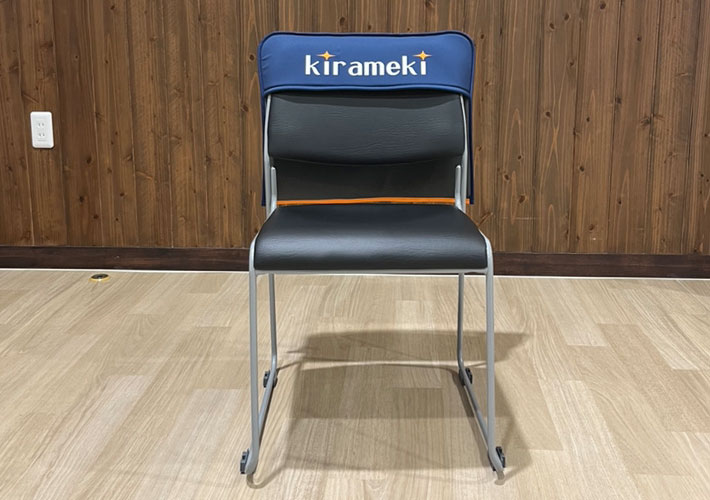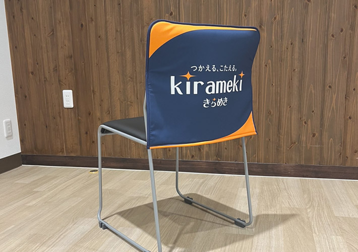 背面デザインは表面と同じ色でベタ印刷していただくのが定番ですが、椅子カバーの視認性を更にアップさせたいのでしたら、ぜひオリジナル名入れが可能な背面もご活用ください!