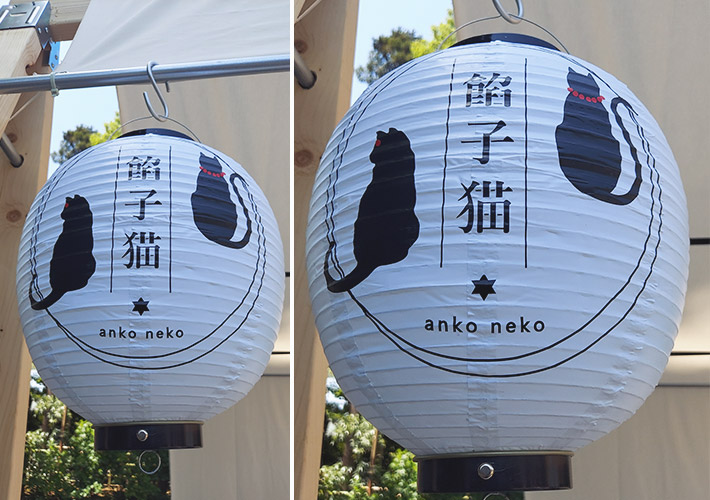 白地・黒枠の提灯に黒猫のイラストが映えるこちらの名入れデザインは、カッティングという製法で制作いたしました。