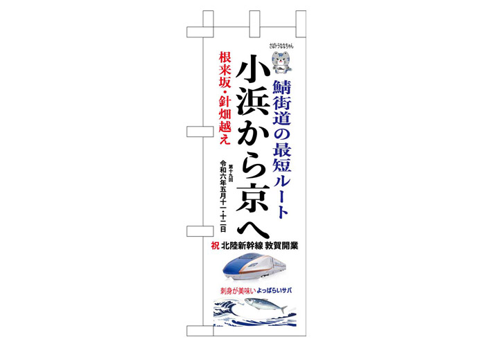 前回のイベントでも弊社にてミニのぼりをご発注いただき、今回は文字を変更し、新幹線のイラストを追加しております。