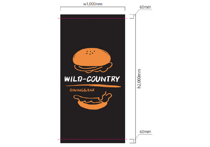 日除けのれんのサイズは自由に調整できますが、今回は当店がお薦めする定番サイズのw1,000×h2,000mmにて制作致しました。