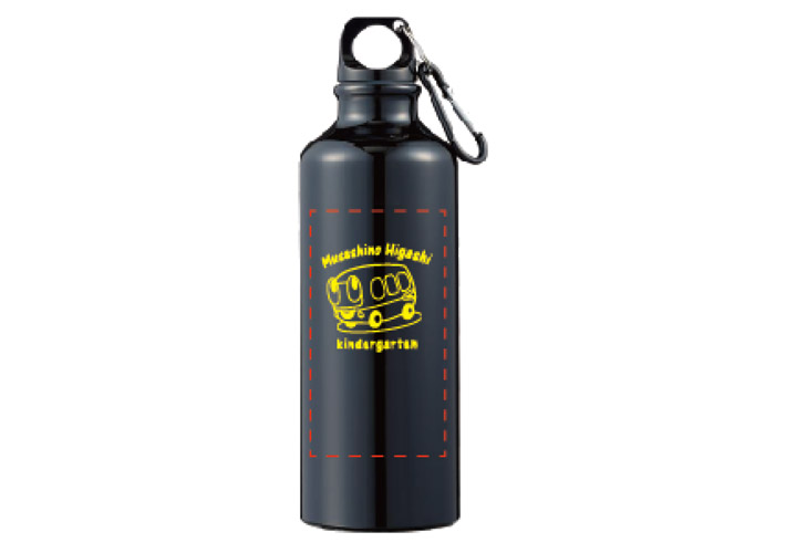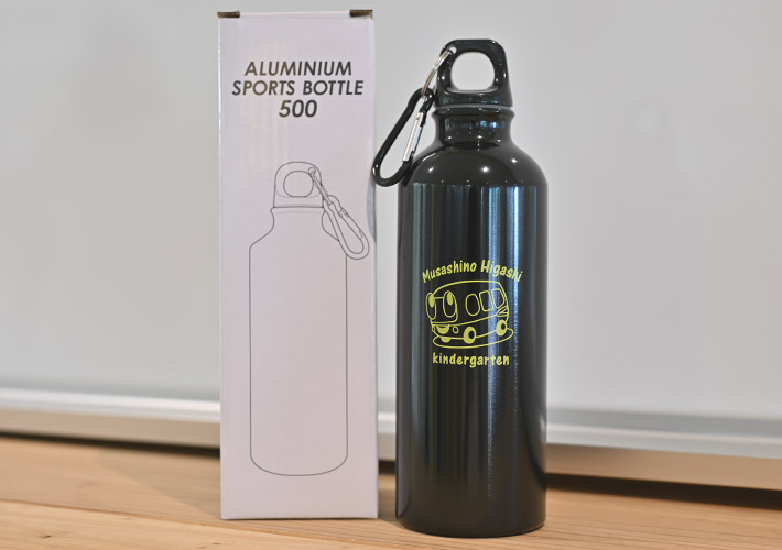 ボトルの正面に、シルク印刷にてバスのキャラクターと幼稚園様の名前をプリント致しました。