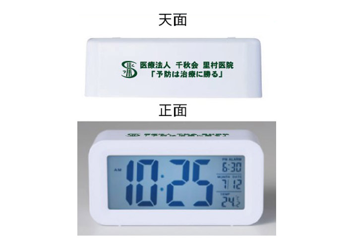 医院様のお名前とロゴだけではなく、体調管理を促す一言が入っていてメッセージ性がありますね。