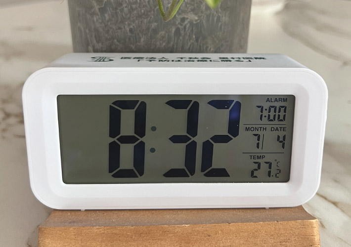 本体には、時計が大きく表示されて時間が分かりやすいデジタルクロックをお選びいただきました。