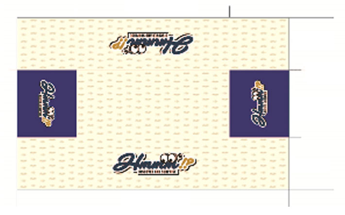 正面・側面・背面にロゴが入ったこちらのデザインから名入れ製作を行いました。