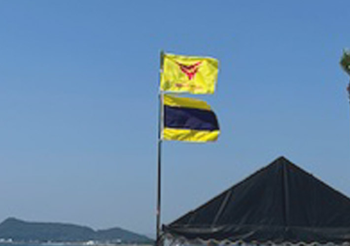 カイトボード大会のテントに掲揚する装飾用オリジナル旗を製作させて頂きましたので、ご紹介いたします。