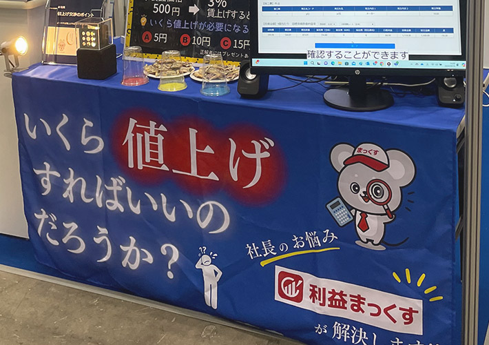 コンサルティング会社様の展示会用テーブルクロスを製作させて頂きましたので、ご紹介いたします。