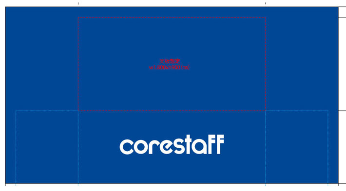 青色に白の名入れがよく目立っていますね!今回は企業様の説明会用テーブルクロスを制作いたしました。