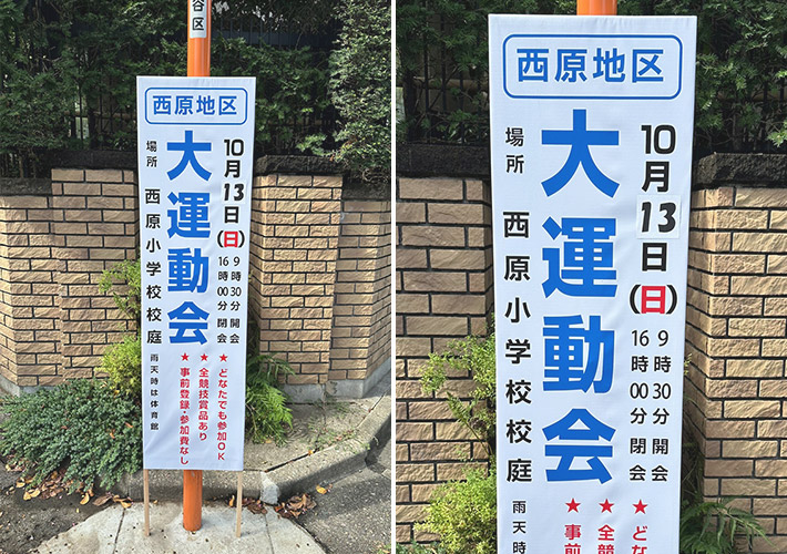 運動会の開催を告知するオリジナル捨て看板を製作させて頂きましたので、ご紹介いたします。