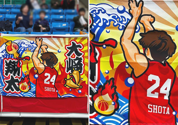 バスケットボール選手様の応援旗を製作させて頂きましたので、ご紹介いたします。