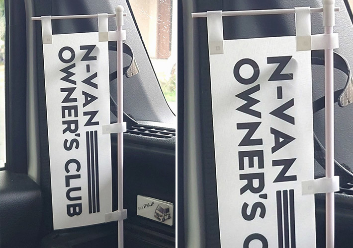 卓上装飾に人気のミニのぼりですが、ウェイト付きタイプのスタンドを使って車のカップホルダーに立てると丁度収まりが良く、車内装飾にもぴったりですね!