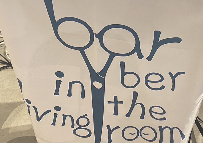 散髪ハサミをデザイン下お洒落なロゴは、昇華転写印刷にてフルカラー名入れプリントを行いました。