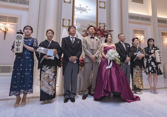 ご両家のお名前が正面に名入れされた高さ約50cmの弓張提灯は、目立っていて受付の良い目印になりますね。
