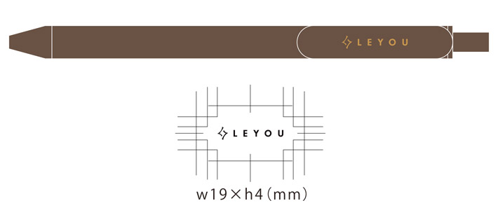 ブラウンの本体にゴールドインクで名入れされたロゴは、1色パッド印刷にて作成いたしました。