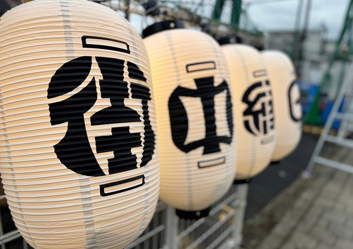 提灯をイメージしたユニークなロゴの文字は、複雑なデザインの製作が得意なカッティングシートにて名入れを行いました。