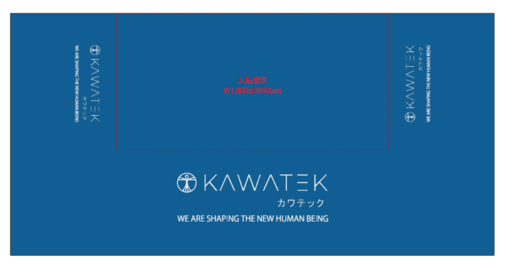 青色の地をベースに、正面と左右面に企業ロゴが入ったこちらのデザインから名入れ作成を行いました。