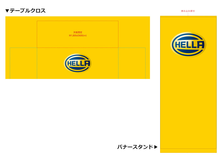 黄色い地に企業ロゴが入った共通のデザインから名入れ作成を行いました。
