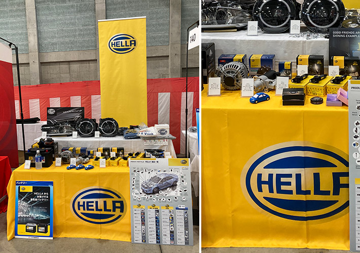 様々な部品が並ぶ賑やかなブースを、目の覚めるような黄色の特注テーブルクロスがいっそう目立たせてくれますね!