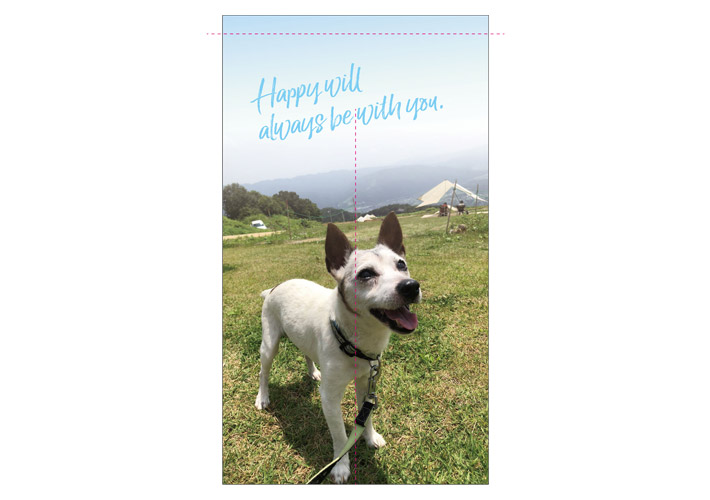 全面にワンちゃんのフルカラー写真が入ったこちらのデザインから名入れ作成を行いました。