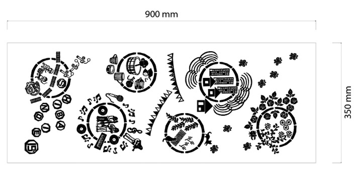 白地に黒1色で印刷された特注デザインは、消しゴムハンコによって作られた地域コミュニティ様をイメージしたイラストになります。