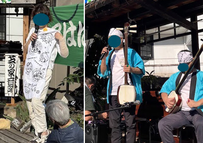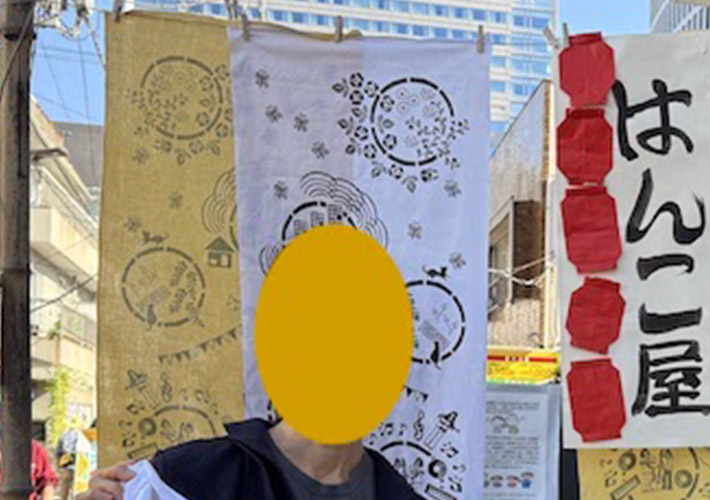 記念手ぬぐいは、イベントで披露された盆踊りの小道具に使っていただいたり、パフォーマー様が頭に巻いたりと幅広い用途にてご活用いただきました!