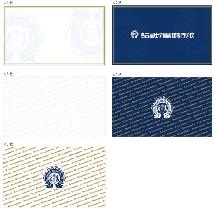 学校名やエンブレムが入った、こちらの5デザインから名入れ製作を行いました。