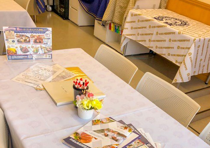 専門学校様のオリジナルテーブルクロスを製作させて頂きましたので、ご紹介致します。