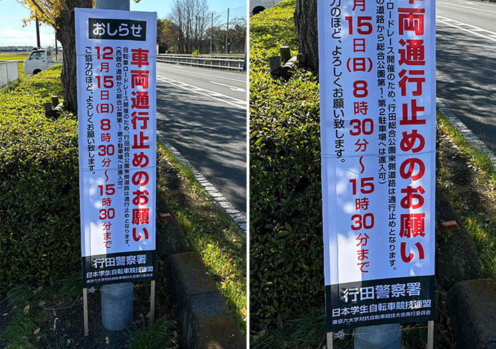 ロードレース開催前から事前に交通規制を告知するのにもってこいですね。