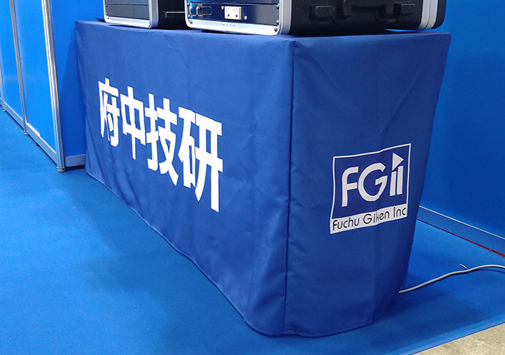 電子機器の製造販売会社様の展示会用テーブルクロスを製作させて頂きましたので、ご紹介いたします。