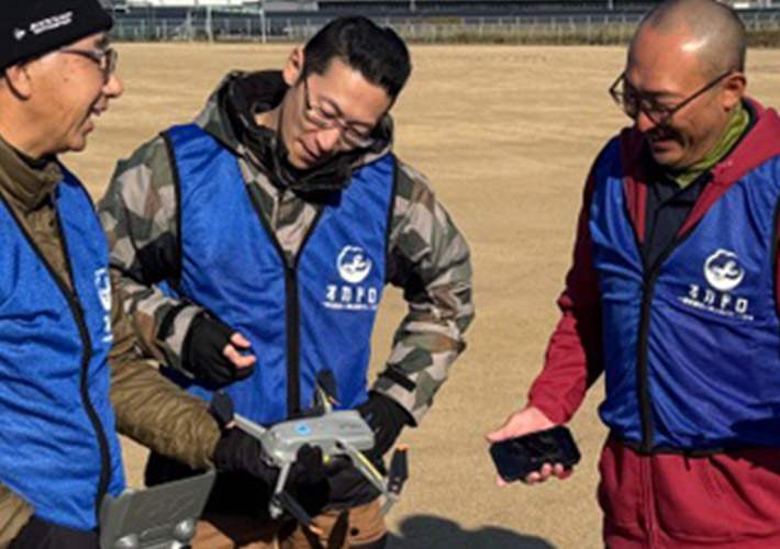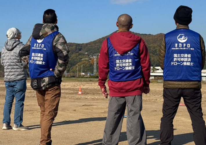 背面にはロゴと団体名、そして国土交通省の許可を得てドローンを操縦していることを示す文字を印刷いたしました。