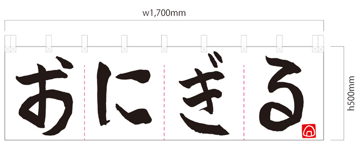 白地に店名とおにぎりの落款が入ったこちらのデザインから名入れ作成を行いました。