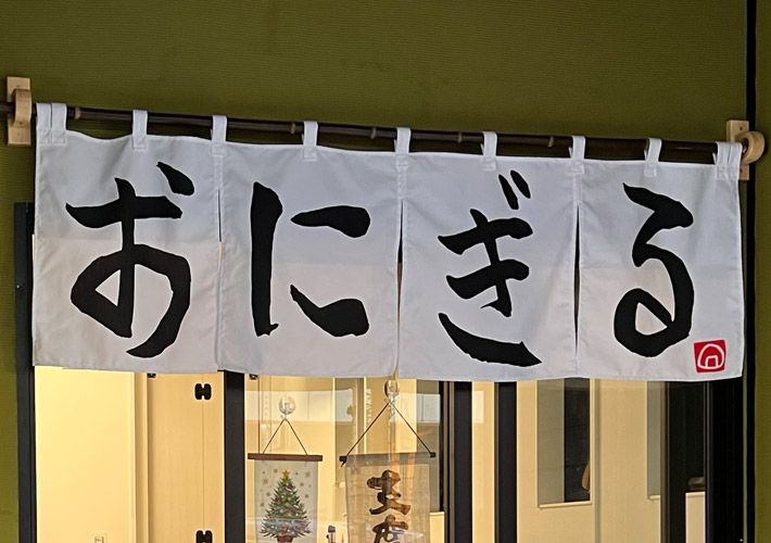 おにぎり専門店様の店舗のれんを製作させて頂きましたので、ご紹介いたします。