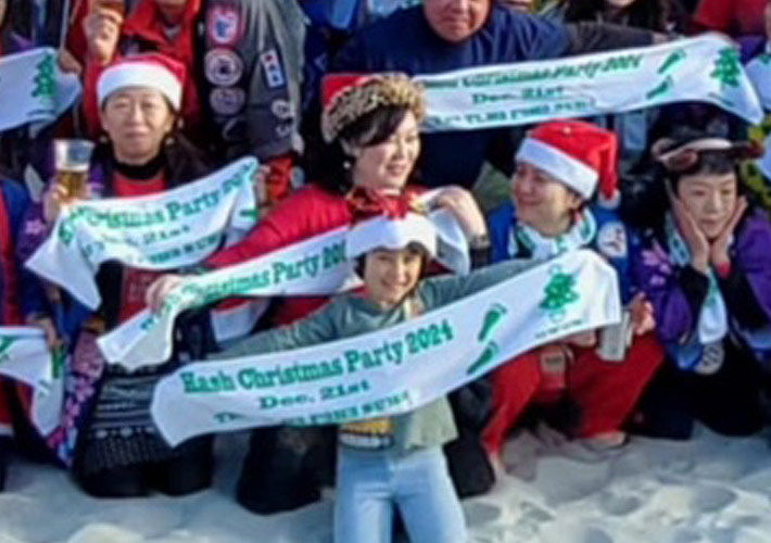 クリスマスイベントで使用される特注タオルということで、イベントの日付やクリスマスツリー、足跡をモチーフにしたロゴを印刷いたしました。