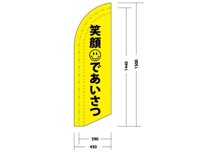 | 仕立て | 標準スウィングバナー仕立て(棒袋・2辺縫製・上部既成カラービニール付き) 左棒袋 |