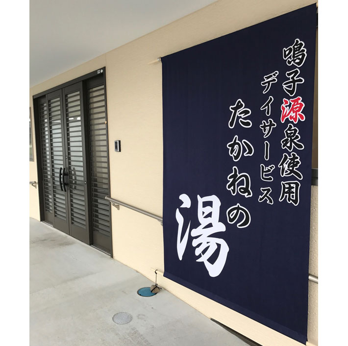 デイサービス様の特注日除けのれんを製作させて頂きましたので、ご紹介致します。