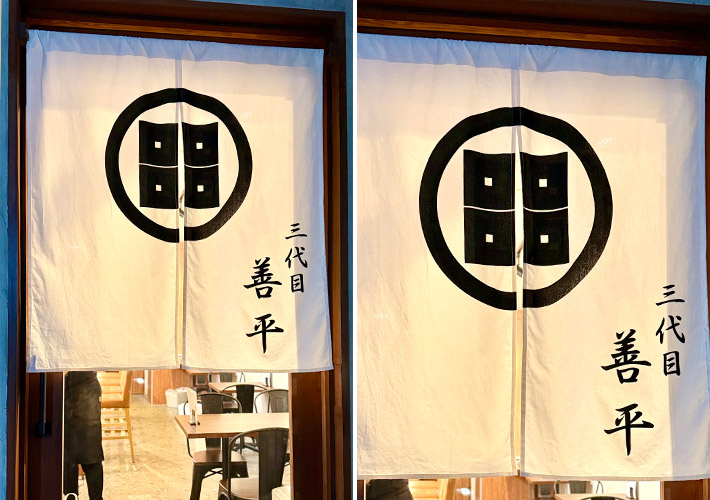 温かみのある生成り色を活かした店舗のれんは、店舗様の看板に活躍!
