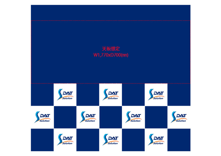 テーブルクロスは全面と天面だけを覆う前掛け型で仕立てており、市松模様はお客様から見える前面に印刷しております。