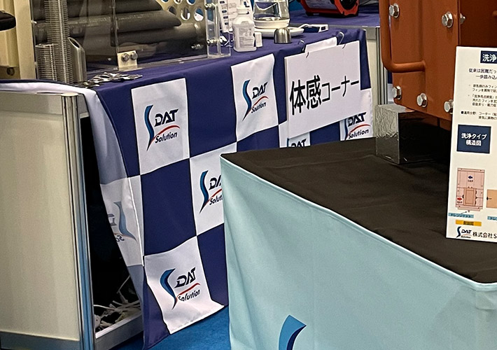 アルミ加工品製造・販売会社様の展示会用テーブルクロスを製作させて頂きましたので、ご紹介いたします。