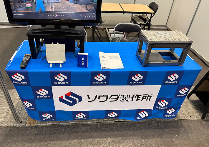 溶接加工業者様の展示会用テーブルクロスを製作させて頂きましたので、ご紹介いたします。