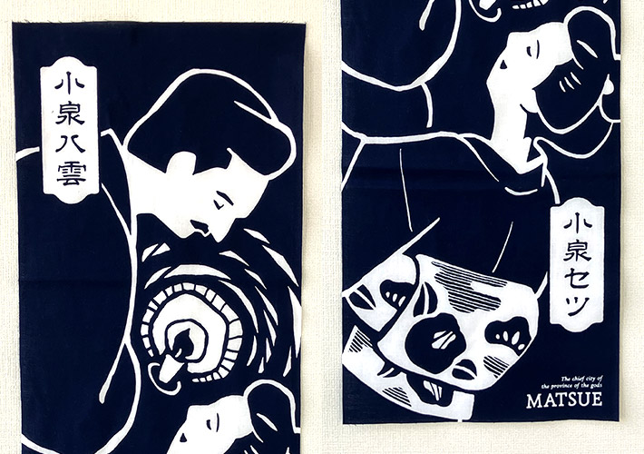 こちらの米寿の祝い用手ぬぐいの題材は、松江ゆかりの作家・小泉八雲と、妻のセツ。