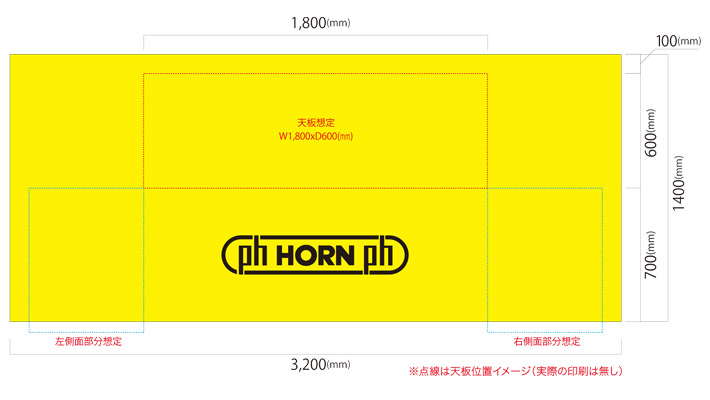 サイズは一般的な会議机の大きさをベースにしたw3,200×h1,400mmで作成致しました。