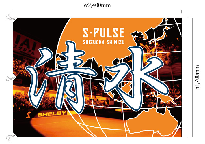 応援旗のサイズは縦横の比を2:3で制作するのが定番で、今回はw2,400×h1,700(mm)にて作成いたしました。