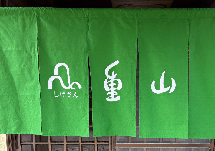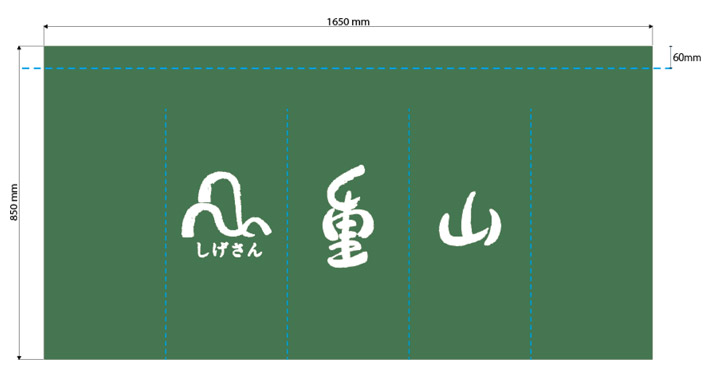 洗いと蒸しを繰り返す本格的な染めの手法である「反応染め」によって、爽やかな緑色の地に山のロゴがお似合いな特注のれんが出来上がりました。