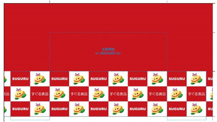 目に入りやすい正面部分にロゴ入れを施すことでアイキャッチ効果の高いクロスになりました。天面はシンプルな無地なので、商品の陳列が目立っています!