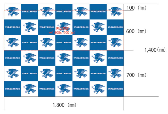 格子柄に社名やイラストロゴが入ったデザインは、展示会や説明会テーブルクロスの定番デザインの一つです。華やかでアイキャッチ力もあり、印象に残るブース制作に役立つかと思います!