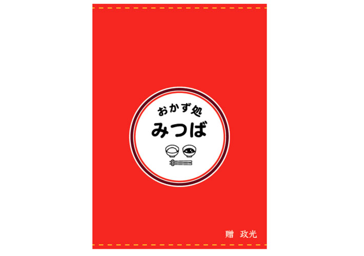 赤のベタ地に店舗ロゴが入った、インパクトのあるこちらのデザインから名入れ製作を行いました。