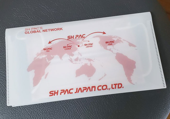 ダブルポケット仕様が便利な抗菌マスクケースにオリジナルプリントを施しました。地図や文字の細部までくっきり鮮明に再現されていますね。