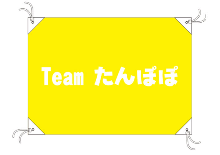 色鮮やかな黄色が目を引く、明るい印象の団体旗となりました。名入れもくっきり綺麗に印刷されています。