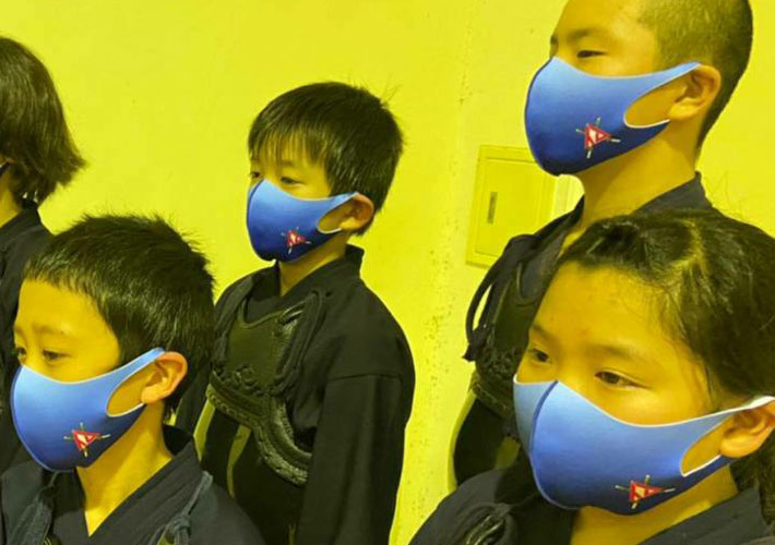 遠目からもマスクのブルーが目立ちます。お揃いマスクを着用することで、チームの士気もいっそう高まりそうですね!